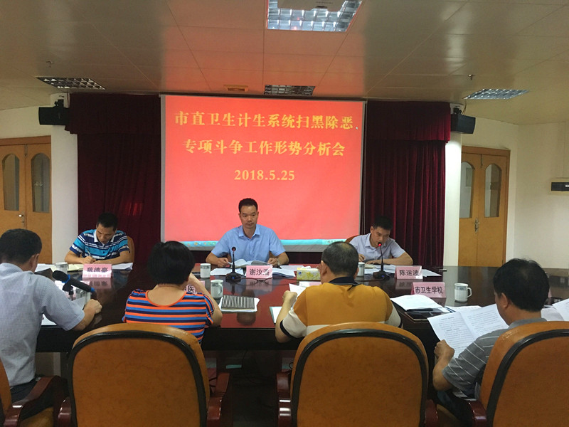 5月25日下午,市卫生计生局组织召开扫黑除恶专项斗争工作形势分析会,听取市直医疗卫生计生单位开展扫黑除恶工作情况汇报,分析当前工作形势,部署下阶段重点工作任务。市卫生计生局副局长谢汝潘参加会议并作讲话。