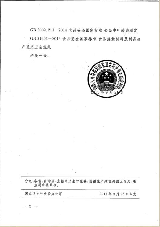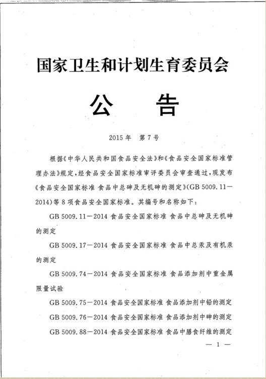 国家卫生和计划生育委员会 公告 2015年 第7号