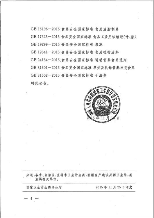 国家卫生和计划生育局委员会公告 2016年 第4号
