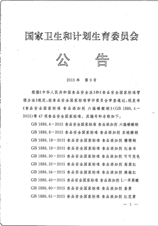 国家卫生和计划生育委员会 公告 2015年 第9号