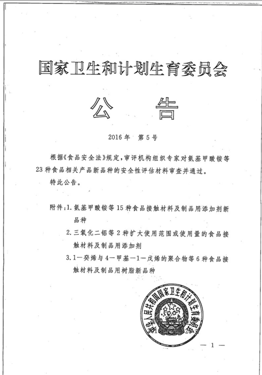 国家卫生和计划生育局委员会公告 2016年 第5号